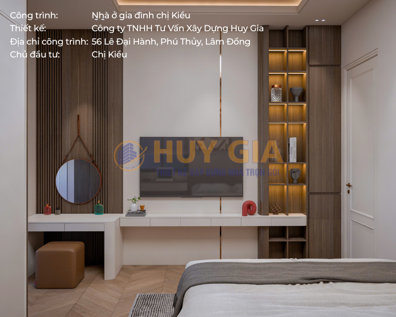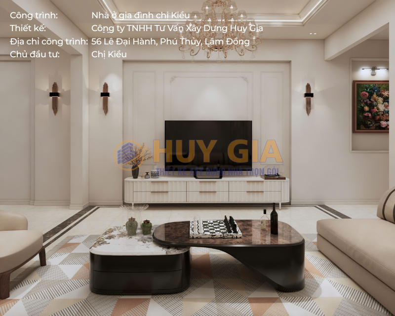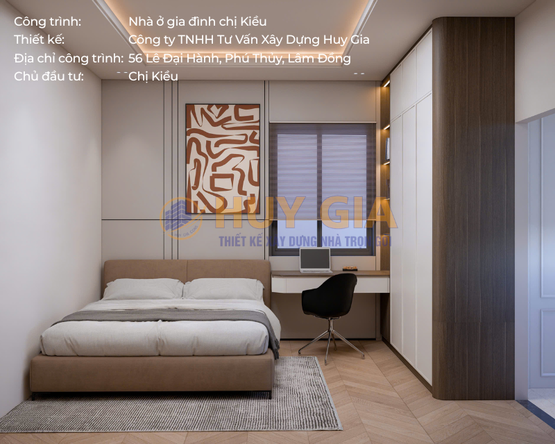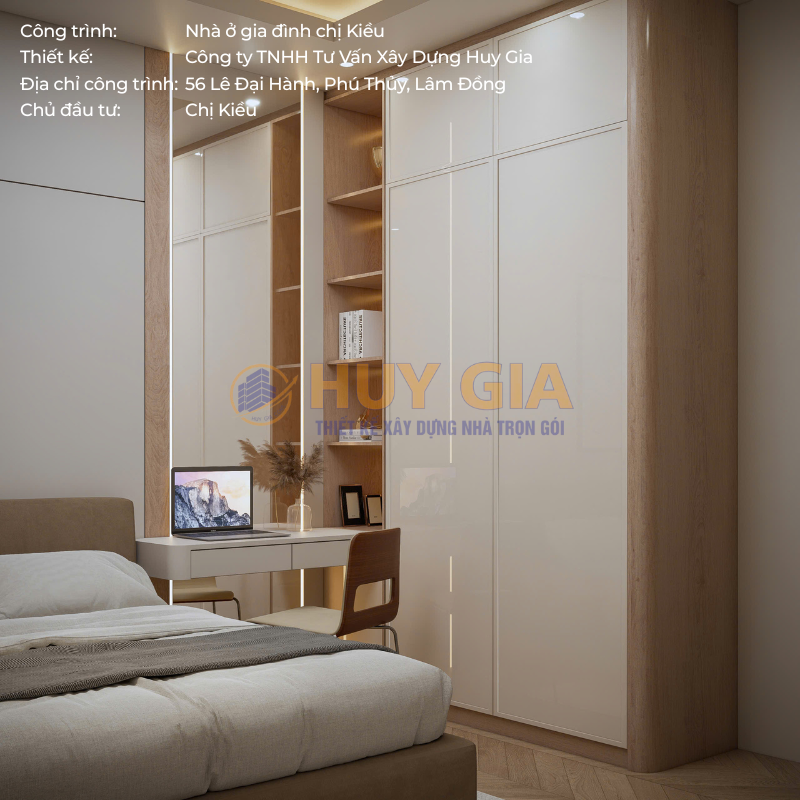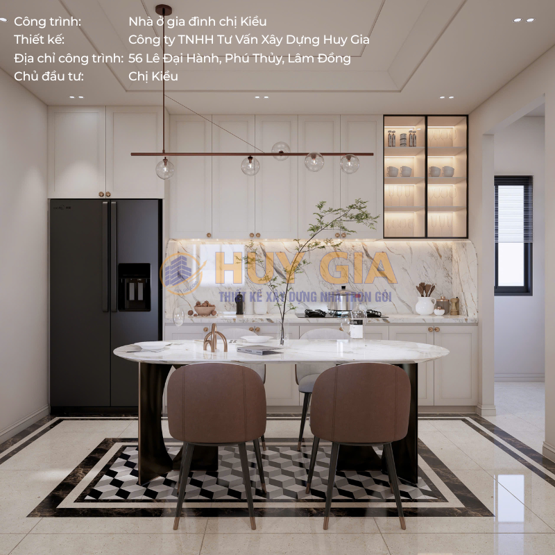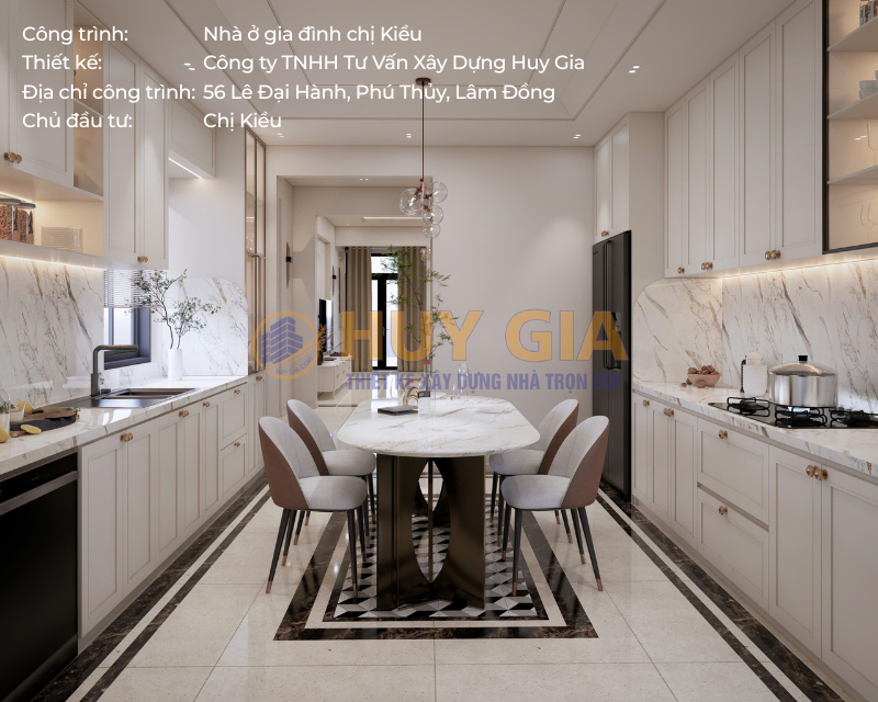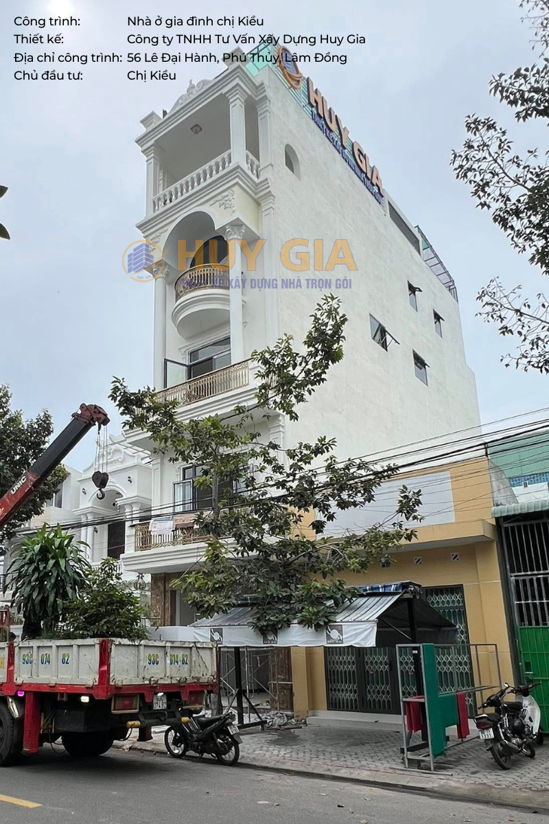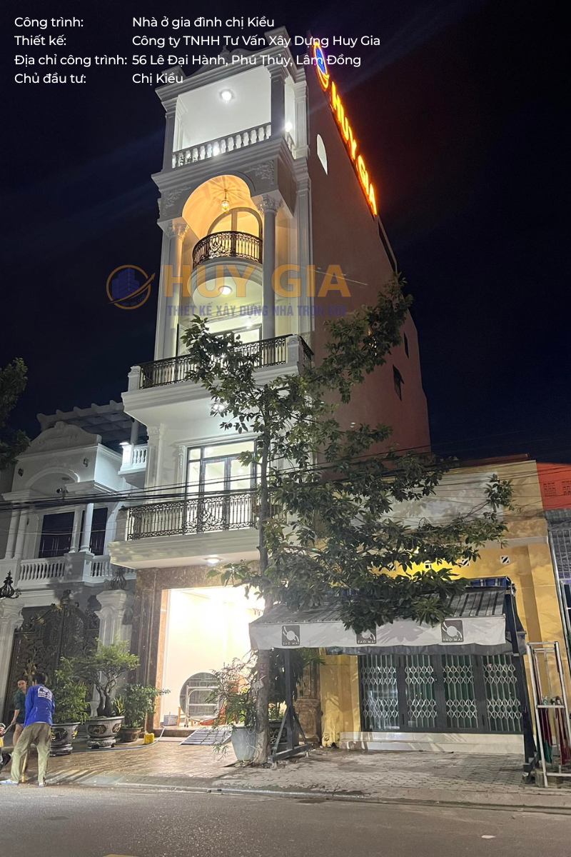 Công trình nhà ở gia đình chị Kiều là dự án được Công ty TNHH Tư Vấn Xây Dựng Huy Gia triển khai với sự trân trọng dành cho từng không gian sống. Ngôi nhà được hình thành từ sự chỉn chu trong thiết kế và tận tâm trong thi công, hướng đến việc kiến tạo một tổ ấm nơi các thành viên có thể an tâm sinh sống và gắn bó lâu dài. Tọa lạc tại số 56 đường Lê Đại Hành, phường Phú Thủy, tỉnh Lâm Đồng, công trình sở hữu vị trí thuận lợi và không gian thông thoáng, góp phần tạo nên môi trường sống tiện nghi, hài hòa và giàu tính thẩm mỹ.