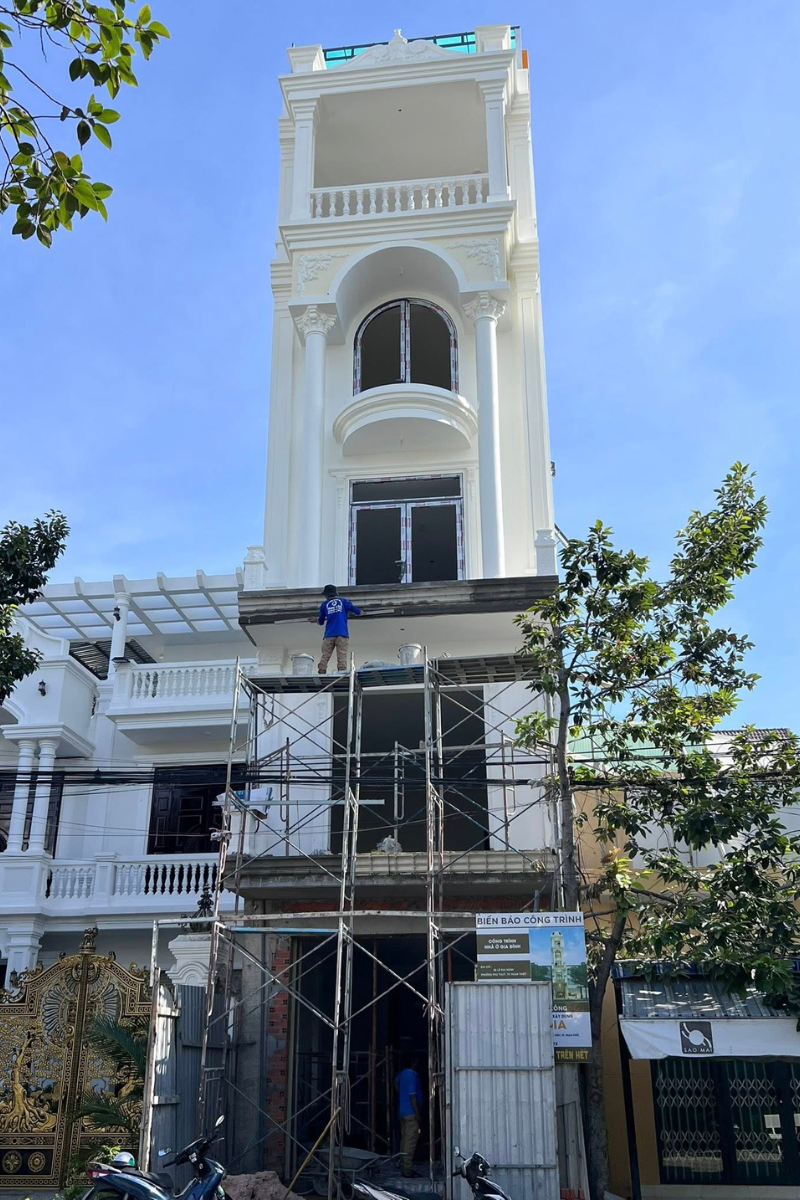 Với quy mô 1 trệt và 4 lầu, công trình sử dụng kết cấu sàn đúc và mái đúc nhằm đảm bảo sự vững chắc cho tổng thể kiến trúc. Đây là nền tảng quan trọng giúp công trình duy trì độ ổn định, an toàn và bền bỉ, đáp ứng tốt nhu cầu sử dụng trong suốt quá trình khai thác.
